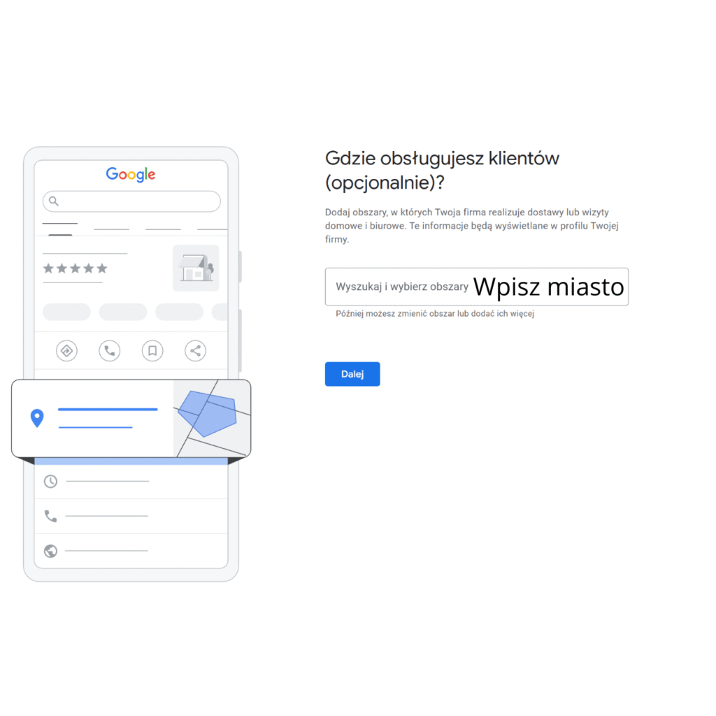 Wizytówka Google bez adresu